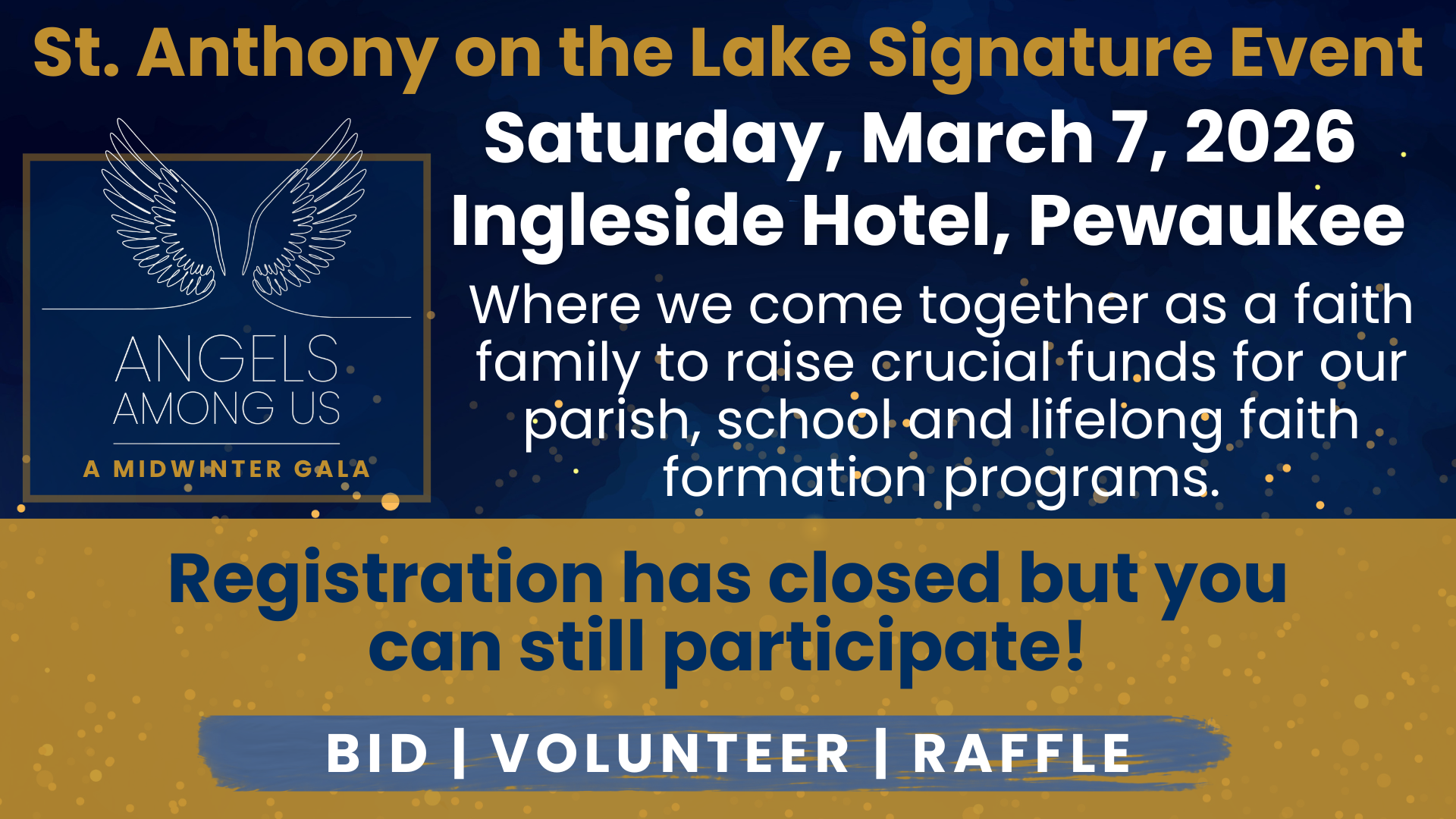 St. Anthony on the Lake is a welcoming, life-giving Catholic faith community. We are committed to witnessing the Gospel message of Jesus Christ through the Sacraments, prayer, lifelong faith formation, and service to those in need.
