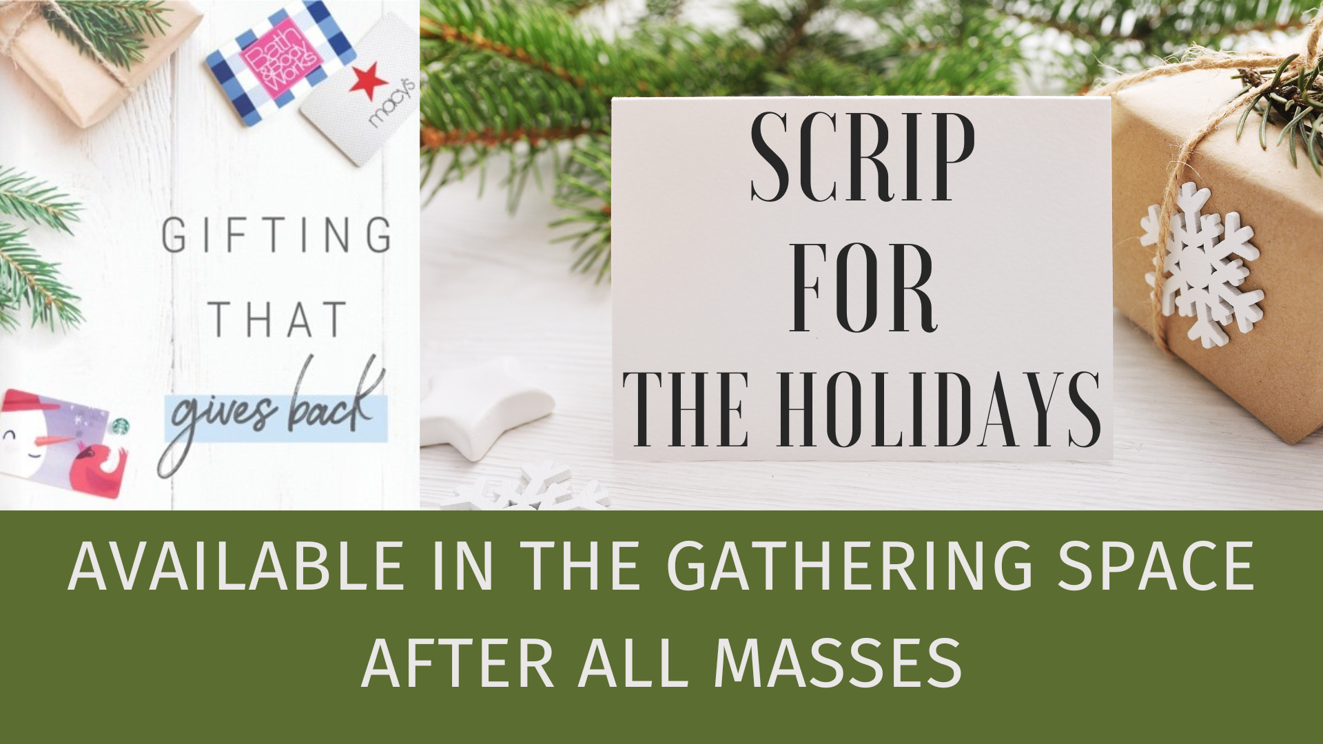 3. After weekend Masses: Scrip volunteers are available after most weekend to sell Scrip (physical cards).